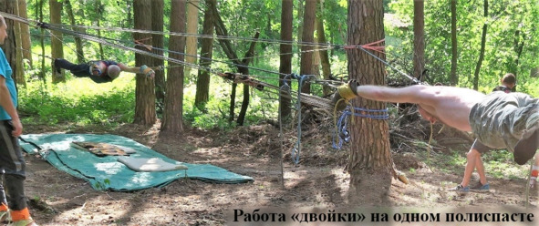 Подобное испытывает мужчина, тренируясь в «двойке» или «четверке» на полиспасте. Но, в отличии от грузов, полиспаст создает такие условия натяжения, при которых один в группе попадает в «эпицентр» нагрузки. До подъема на высоту среднего уровня, полиспаст растаскивает каждого в группе с одинаковой силой. Никто не знает, на кого выпадет учесть держать «основной удар». Когда выбор падает на тебя, то главной задачей становится в контуре. Если ты потеряешь связь с товарищами и замкнешься на себе и своих переживаниях, то не устоишь, и вся «боевая единица» развалится. удержание своей позиции