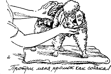 156Если собака промокла от дождя или снега, ее нужно досуха вытереть тряпкой.