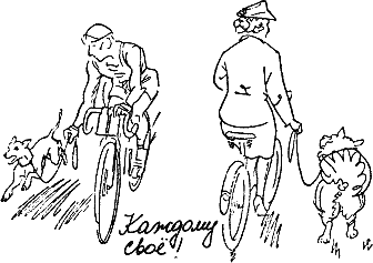 После продолжительной велосипедной прогулки уставшая собака лучше подчиняется вашим командам. Кроме того, собака, сопровождая велосипедиста, имеет возможность вволю набегаться. При этом она должна бежать справа от велосипеда и обязательно быть на поводке. Поводок ни в коем случае нельзя закреплять на велосипеде, держите его в руке. Начинать надо на безлюдных дорожках, в стороне от города. Вначале вы ведете велосипед рядом с собой, затем, сев на велосипед, едете медленно, постепенно ускоряя темп, но так, чтобы собака могла сопровождать вас без излишнего напряжения. Следите за тем, чтобы она находилась на некотором расстоянии от велосипеда, а поводок оставался ненатянутым. После достаточно продолжительного занятия позвольте собаке побегать рядом с велосипедом без поводка.