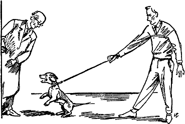 Наденьте на собаку рывковый ошейник, возьмите её на поводок. После того, как прозвенит звонок, дайте ей полаять, а затем дайте команду «Сидеть!» и, открывая дверь, резким рывком ошейника удержите собаку от попытки броситься на входящего, пока она не станет послушной и не сядет. Любое другое проявление невоспитанности во время присутствия и ухода третьего лица наказываются аналогичным образом. Такое поведение по отношению к чужим особенно проявляется у шпицев, терьеров, пинчеров и такс.