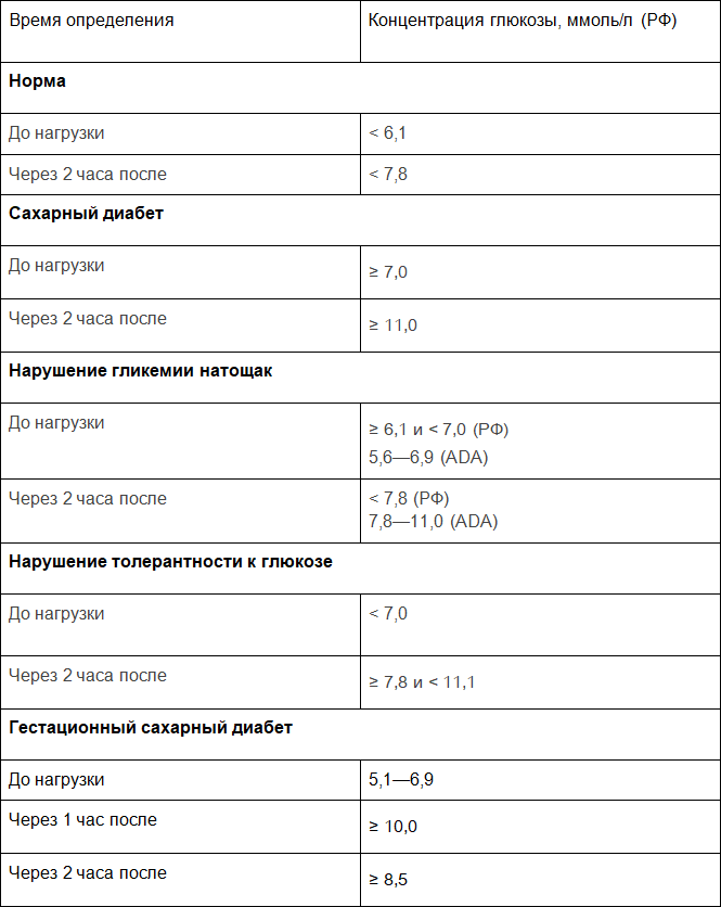 Показания к проведению ПГТТ – диагностика сахарного диабета, предиабета, гестационного сахарного диабета, а именно в следующих ситуациях [1, 4]: