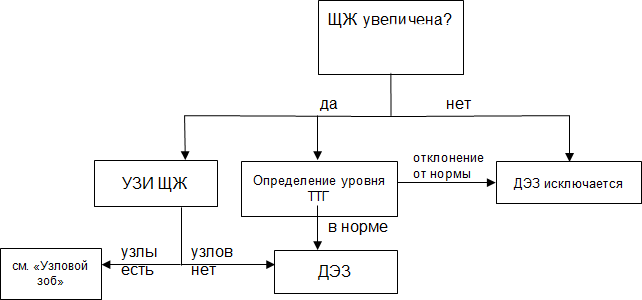 Определение уровня тиреотропного гормона (ТТГ)Если объем щитовидной железы у женщин превышает 18 мл, а у мужчин 25 мл, необходимо направить пациента на лабораторное исследование с определением ТТГ.