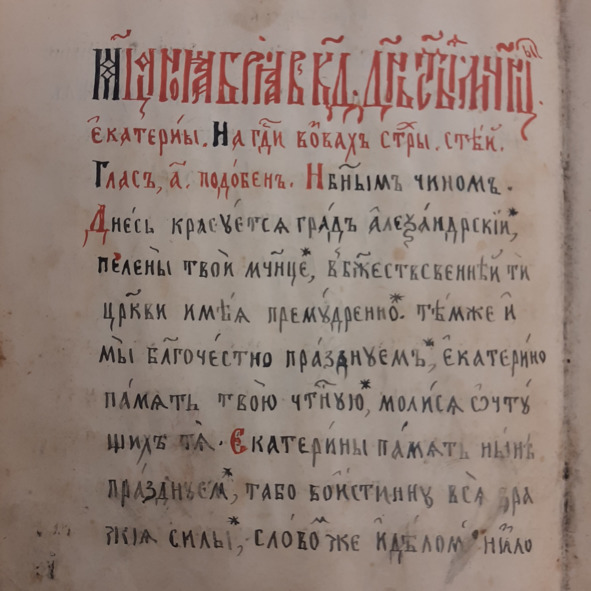 Служба св. великомученице Екатерине. Старообрядческий богослужебный сборник XIX в. (д. Ровное Рыкшинской волости Невельского уезда)