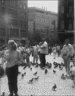 В 1950х годах на ступеньках Национального памятника жертв Второй Мировой Войны собирались хиппи (панки), вокруг памятника они и ночевали. Теперь прочий люд валяется прямо на мостовой – отдыхает. Почему-то мне не захотелось ощутить это удовольствие. А, может быть, не было ещё усталости и желания тратить драгоценного времени. Нет, всё же не было желания расслабляться до уровня той суеты, где правят балом распущенность и вседозволенность. Однако замечу, что в последнее время площадь стала более спокойным и умиротворённым местом с сотнями живущих здесь голубей, готовых клевать корм из рук.