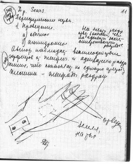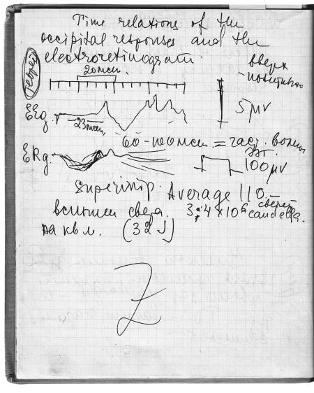 Она знакомится с усовершенствованиями методики исследования биопотенциалов6 головного мозга – различными формами наружных электродов, способами их наложения. Это было интересно, но не являлось для нее принципиально новым. Поэтому первая часть «научного дневника» – это в основном описание методических приемов изучения мозга: энцефалограмм и точек доступа, методик проникновения в мозг и регистрации различных процессов, происходящих в мозге у людей и животных.