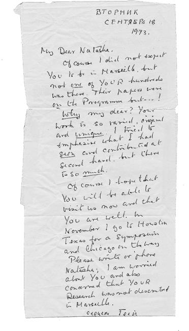 Я всегда отвечаю на письма. Единственный раз не ответила, когда написала мне восторженное письмо по какому-то поводу одна из тех, с кем я жила в одной комнате…