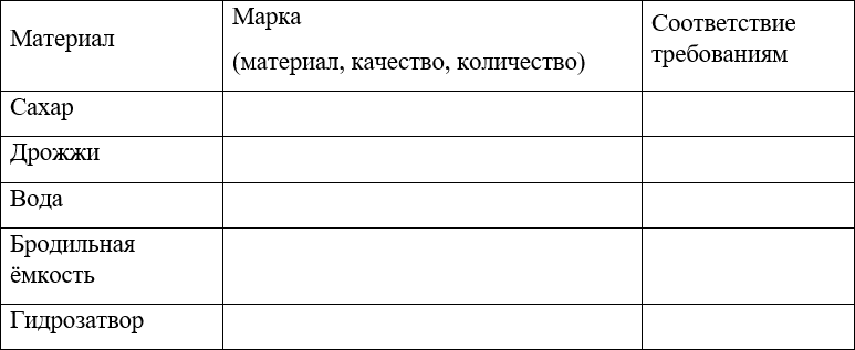 Задача № 2. Подберите качественные материалы для браги и заполните таблицу: