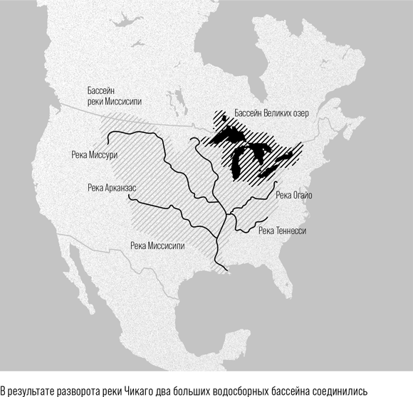 Эти два огромных бассейна находятся совсем рядом, но являются – вернее, являлись – отдельными водными мирами. Рыбы (а также моллюски и ракообразные) не могли перебраться из одной системы в другую. Когда был прорыт Чикагский санитарно-судовой канал, решивший проблему со сточными водами, открылся портал, и два водных царства соединились. На протяжении почти всего XX в. это никого не беспокоило; в наполненном сточными водами канале рыба просто не выживала. Но с принятием Закона о чистой воде и благодаря работе таких общественных организаций, как «Друзья реки Чикаго», условия в канале улучшились, и через него начали проникать рыбы типа бычков-кругляков.