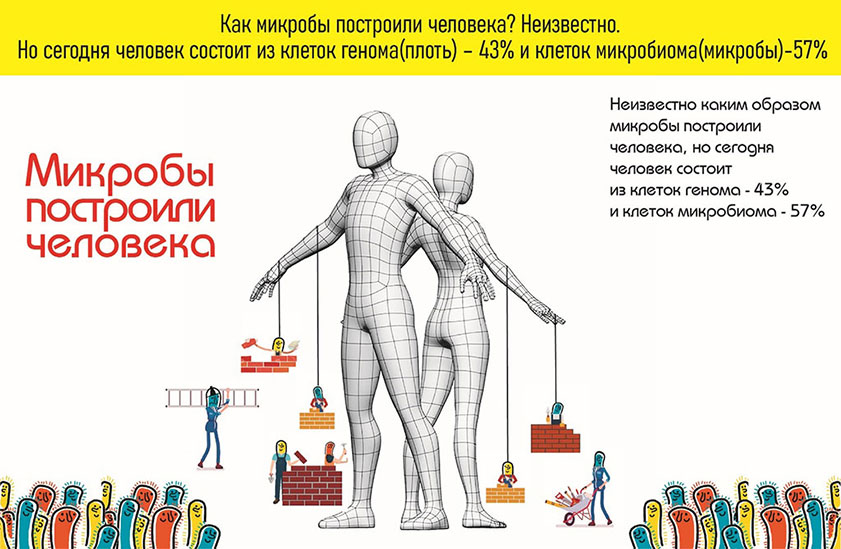 Главная мысль 01: Возможности секвенирования биополимеров позволяют нам сегодня определить микробиом человека, математически выраженную микробиоту. Микробы руководят мозгом человека. Человек, по своему биологическому строению, скорее микробиом, чем геном.