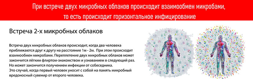Главная мысль 04: если раньше мы считали, что микробная инфекция передаётся в основном воздушно-капельным путём, то после открытия микробного облака нам стал понятен ещё один способ заражения: микробные облака больных людей могут передавать болезни другим людям.