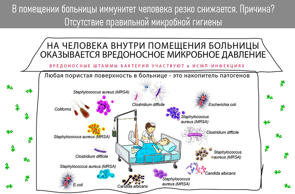 Главная мысль 07. Внутри любых помещений человек имеет сожительские отношения с микробами. Везде и всегда человек инфицируется этими микробами: и хорошими, и вредоносными. И вопрос величины инфицирования зависит лишь от вида микробов, подаренных человеку этим помещением.