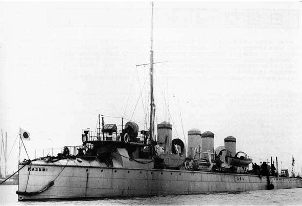 Эскадренный миноносец «Касуми». Был в составе 1-го отряда, вероломно атаковавшего русские корабли на внешнем рейде Порт-Артура. Один из сильнейших японских миноносцев на момент начала войны. Водоизмещение (стандартное / полное) – 363 / 415 т. На испытаниях развил скорость 31 узел. Вооружение: 2 торпедных (минных) аппарата калибром 457 мм (по одной торпеде в каждом), 1 орудие калибром 76 мм, 5 орудий калибром 57 мм