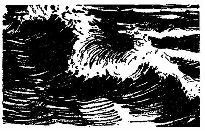 Развязав свои путы, я добрел до люка, натыкаясь на переборки, приоткрыл люк и выглянул на палубу. Я увидел широкую полосу пены и плещущие волны. Но воздух был неподвижен. Громадные пологие валы исчезли бесследно, и вместо них вздымались и опускались отвесные водяные горы.