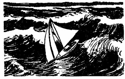Вокруг, насколько хватал глаз, вздымались целые водяные пирамиды. То тут, тот там их рассекали другие волны, они меняли очертания и разлетались мелкими брызгами. Палуба почти все время была залита водой, плавучий якорь стал ненужен. Яхта вертелась во все стороны, чертя мачтой воду то справа, то слева. Внезапно она взлетала высоко вверх и так же внезапно падала.