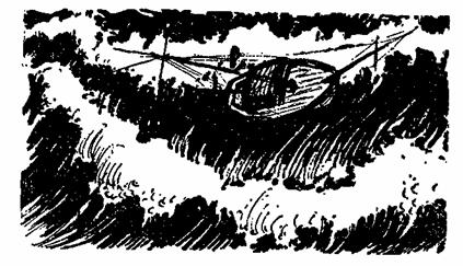 Я сразу понял, что плавучего якоря больше нет,– видимо, трос перетерся о ватерштаг. Я стал искать, чем бы заменить его. Нужно было во что бы то ни стало повернуть яхту к ветру, а это возможно только при помощи плавучего якоря. Изготовить его сейчас, когда «Язычник» носился по волнам, я бы не смог, к тому же на это не было времени – за какой-нибудь час яхта развалилась бы на части. Словно в подтверждение моих мыслей большая волна ударила в борт, сильно накренив яхту. Я решительно взялся за дело.