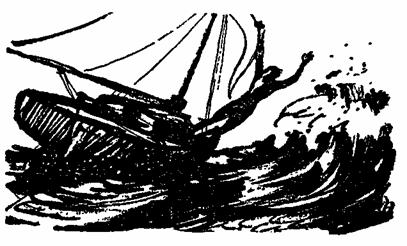 Внезапно парус обезветрился, и я полетел на палубу, ударившись с разгону о мачту. Прежде чем я успел разжать руки, меня снова подняло на воздух. Ветер хлестал по парусу и трепал меня, как треплет терьер пойманную крысу. Но вот кливер сорвался с леера и, поникнув, упал вместе со мной в море.