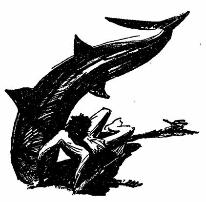 Я изо всех сил потянул леску. Крюк впился в пасть акулы; испытывая мучительную боль, она попыталась оборвать лесу, потом внезапно заметалась, вздымая фонтаны воды, и рванулась прочь.