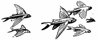 С восходом солнца я поднимался наверх и подбирал упавших за ночь на палубу летучих рыб. Рассекая носом волны, яхта наводила на них ужас, рыбы стаями, как перепелки, взлетали в воздух. Часто они натыкались на паруса и падали на палубу. Каждое утро я находил по крайней мере одну летучую рыбу и отдавал ее голодным котятам, если же рыб оказывалось несколько – я тоже лакомился ими.