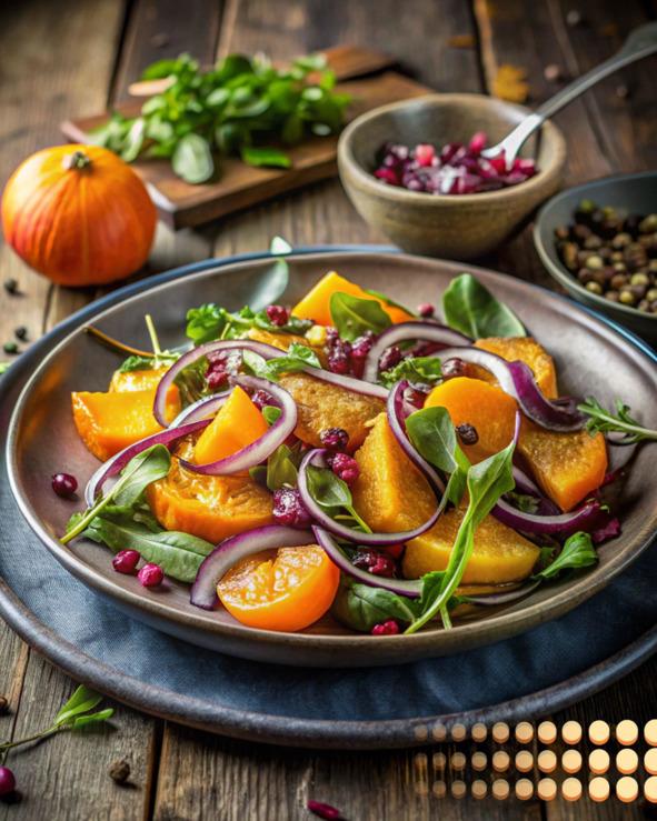 Этот свежий, легкий и яркий веганский салат с тыквой и апельсинами – отличный вариант для здорового обеда или закуски. Сочетание сладких апельсинов, нежной тыквы и заправки на основе оливкового масла и уксуса делают его невероятно вкусным и ароматным, а листики шпината внесут свежесть и цветные контрасты!