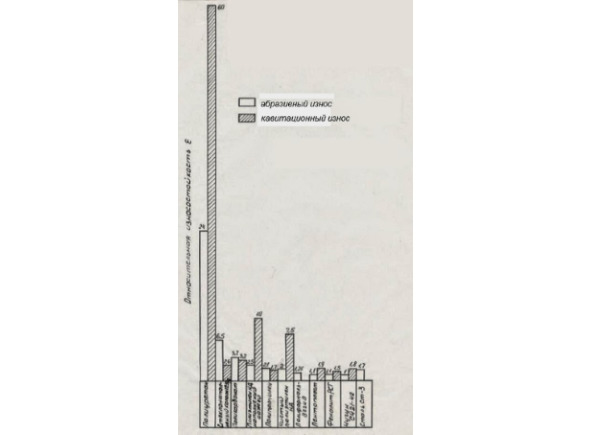 Рис. 1.20. Относительная износостойкость сталей и чугуна при кавитационном износе