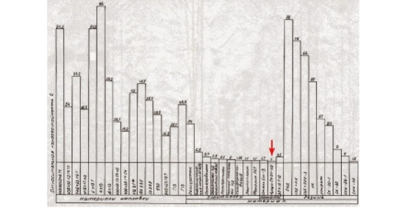 Для обеспечения сопоставимости показателей относительной износостойкости всех испытанных образцов в лабораторных условиях материалов, (рис.1.15—1.18), была построена обобщённая диаграмма относительной износостойкости материалов и наплавок при гидроабразивном износе, представленная на рис. 1.19. При построении указанной обобщённой диаграммы за эталон износостойкости был принят серый чугун СЧ 21—40. [4]