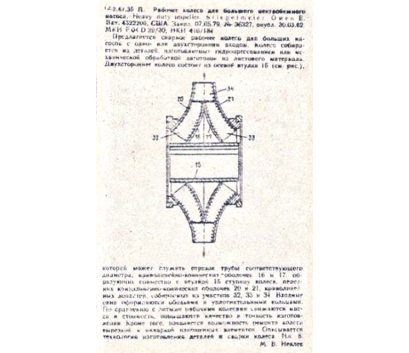 На основании акта обследования, рис. 30, рабочие колеса сварной конструкции были рекомендованы для серийного производства и внедрения на насосных станциях.