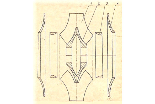 1- лопасть; 2- ступица; 3- горловина; 4- покрывной диск