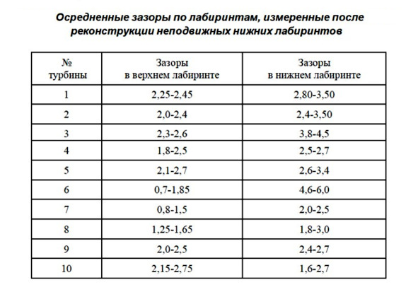 В доаварийных гидротурбинах СШГЭС неподвижное кольцо нижнего лабиринта выполнено несъёмным. Поэтому, в условиях электростанции восстановление подвижного и неподвижного колец до заводских размеров оказалось невыполнимым, в связи с чем ряд агрегатов работало с увеличенными зазорами в нижних лабиринтных уплотнениях» [1].