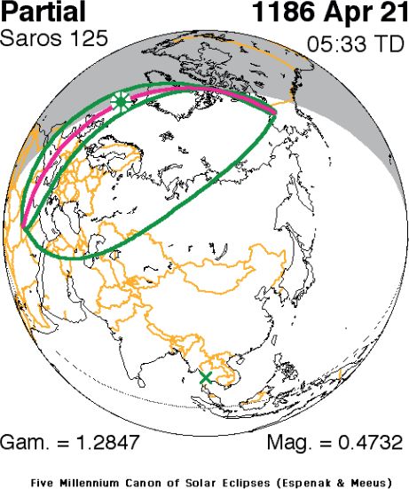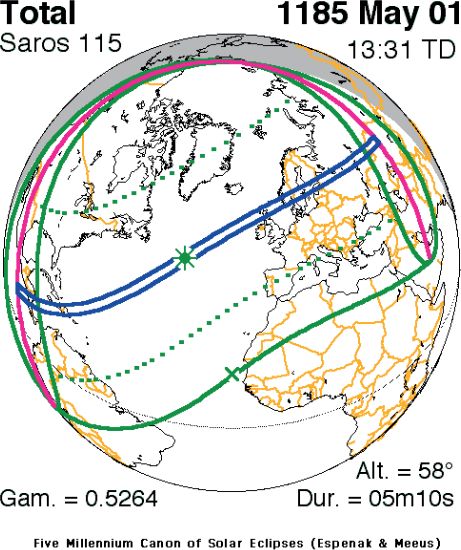 Рис. 4. Полное солнечное затмение 1 мая 1185 года