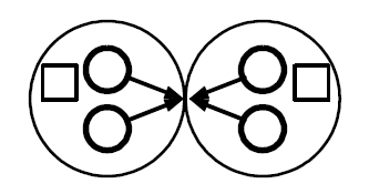 Рис. 34. Интегральный подход. Свойства целого (системные свойства – кружочки) видны в контексте взаимодействия «целого» с «целым». => Системные свойства должны предсказывать особенности межсистемных отношений. => Критерий совместимости