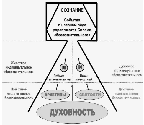 Рис. 45. Принципиальная схема душевного мира человека, где существует «духовное коллективное бессознательное», содержанием которого являются семь Святостей