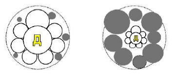 Рис. 46. «Ядро» здоровой (слева) и дисгармоничной личности (справа)
