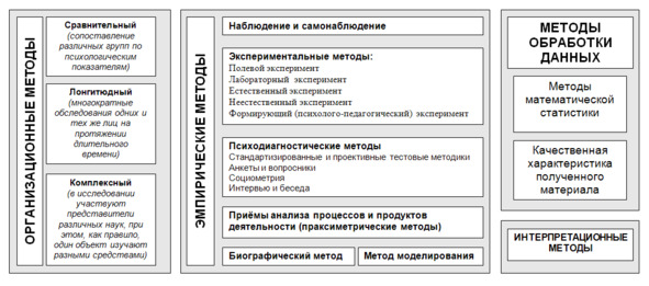 Существуют и другие подходы к описанию и классификации методов психологического исследования, но практически всегда ставится знак тождества между эмпирическими методами психологического исследования и психологическими методами вообще, что затрудняет определение специфики тех и других.