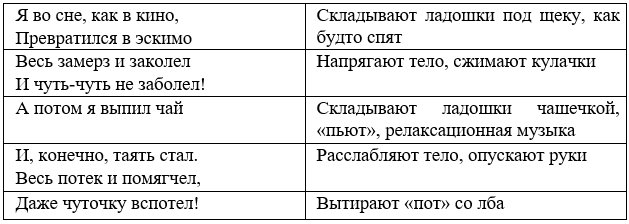 Релаксационные упражнения помогают снять напряжение и утомление. Они направлены на произвольное расслабление мышц, которое достигается при помощи сочетания двигательной активности и мышечного расслабления.
