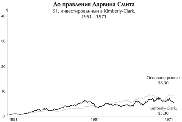 Harry S. Truman[18]В 1971 году, казалось бы, ничем не выдающийся человек по имени Дарвин Смит стал главой компании Kimberly-Clark – старого, неповоротливого предприятия по производству бумаги, чьи акции за предшествующие двадцать лет упали на 36 % ниже среднего показателя по рынку.