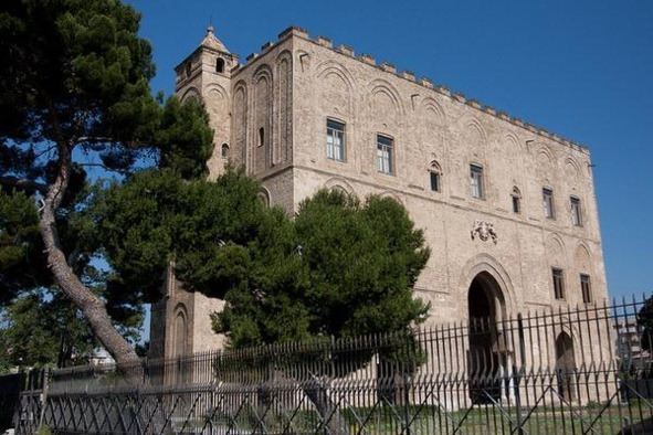 Резиденция сюринтенданта в Палермо представляла старинное и необыкновенное сооружение, особенно зрелищное на фоне синего ночного сицилийского неба. Дворец Циза15 представлял собой высокую квадратичную коробку в три высоких яруса-этажа, прямоугольные прорези окон в которых совсем не оттеняли вид фасада сходного чем-то с плоской желтой стеной, нарезанной валообразными вырезами оконных ниш. Сложенный из камня цвета не выгорающего на солнце, дворец по ночам освещался желтым светом огня и представлял собой яркое зрелище, строгой коробки с приставленными по бокам суживающимися многогранниками высоких башен.