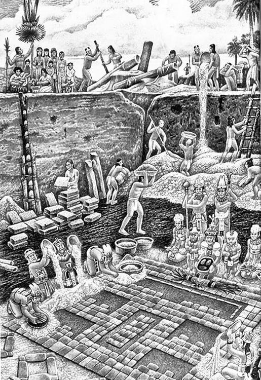 Как и рассмотренные нами ранее церемониальные сооружения Старого и Нового Света, комплекс явился результатом общественных работ гигантского масштаба. В его составе – курганы до 70 футов высотой и шесть концентрических насыпей с внешним периметром в две трети мили. Только создание насыпей потребовало в свое время более 3 миллионов человеко-часов тяжелого труда.