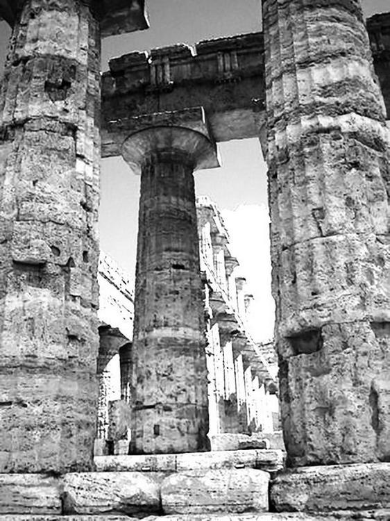 Рис. 1. 20. a. Модель Греческого Храма, b. Руины храма Нептуна в Paestum, Италия.