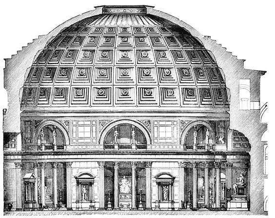 Приняв и развив греческую ордерную систему, римляне, однако, отошли от ее структурной чистоты, и стали использовать элементы архитектурных ордеров для декорации несущих стен. Причиной изменения конструктивной и эстетической ориентации стало изобретение нового строительного материала – бетона.