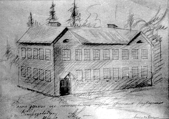 Рисунок здания Петрозаводской разведшколы.