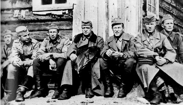 Преподаватели Петрозаводской школы финской разведки. Третий слева – начальник школы майор Рейно Раски, второй слева – Игорь Вахрос (Вахромеев)