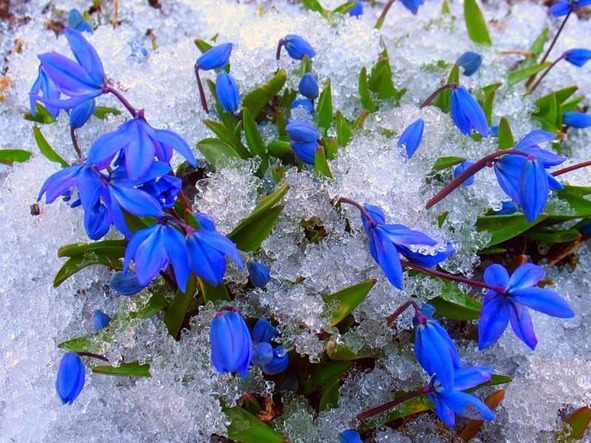 На проталинках лесных с лепестками нежнымиМного ярко-голубых маленьких подснежников.Не замёрзнут в холодке среди снега белогоНа коротком стебельке первоцветы смелые.Как солдатики стоят, солнцу улыбаются,С тёплым солнышком весной рано появляются.