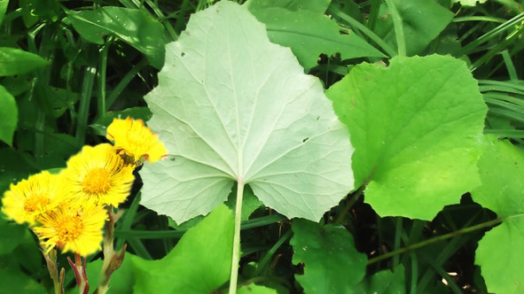Берег весь речной усыпан «мать-и-мачехи» цветами.Почему зовут цветок так? Поделюсь сегодня с вами.Ярко-жёлтые цветочки на коротких ножках крепких.Но название в листочках, крупных и зелёно-бледных.Сверху мачехи листочек, гладкий, глянцевый, холодный,Но внутри, как мамы ручки, нежный, бархатный и тёплый.Эти листья и цветочки от простуды нас спасают.«Мать-и-мачехи» росточки возле речки обитают.