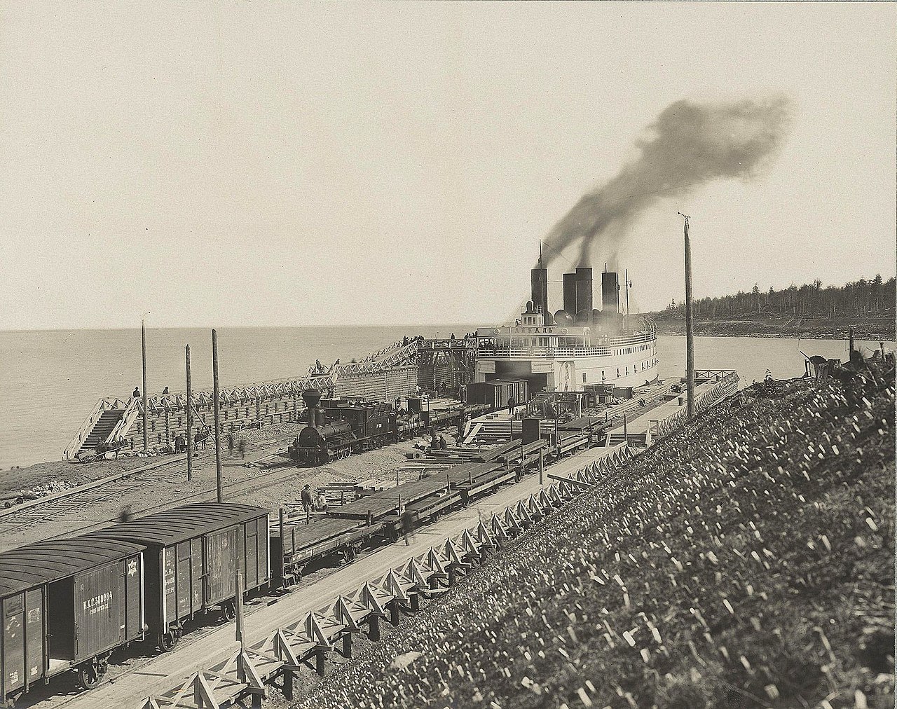– Трансиб построили, но, к тому времени изменился состав Антанты, Франция проиграла войну объединенной Германии, и настояла на том, чтобы в состав союза была включена Англия. Напоминаю, что продвижение России на юг и восток было антибританским делом. В результате, под давлением Англии, Трансиб оказался разорванным на три части. Первоначально существовало три проекта Кругбайкальской магистрали: по реке Иркут, по реке Ольха, притоку Иркута, и вдоль реки Ангара до порта Байкал. Англичане предложили, ссылаясь на сложности прокладки пути, спроектировать и построить для России паровые паромы-ледоколы. Быстренько состряпали проект и передали его России. Паром изготавливался в Ньюкастле, а собирали его в селе Лиственничном на Байкале, на правом берегу Ангары. Назывался «Байкал», его мощность была 3750 лошадиных сил: