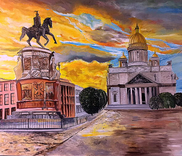 Ангел летит над сонными домами,Видит сквозь стены тебя и меня,Город спит в дымке прозрачно-туманной,Город на Неве, в мерцающих огнях.Крест уходит в небо, золотой, над куполом,Счастье и покой горожан храня,Ангел, белый ангел, летает где? И тут ли он?Будит утром взмахом легкого крыла.Фонари сиянием красивым светят издали,Звуки вырываются из спящей тишины,Утро в Петербурге с летящим небожителем,Лучами солнца яркого дома озарены.Мягкий свет собою проспекты заполняет,Покидает улочки, растворяясь, тьма,Солнце светит ласково, и утро вновь рождаетЧувство радости для восхитительного дня.