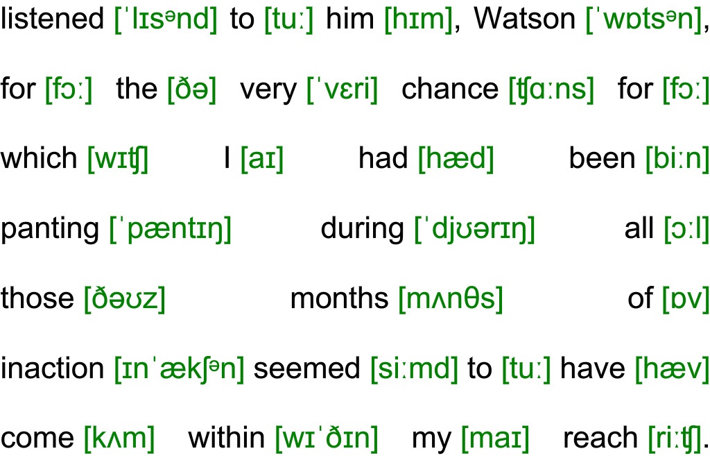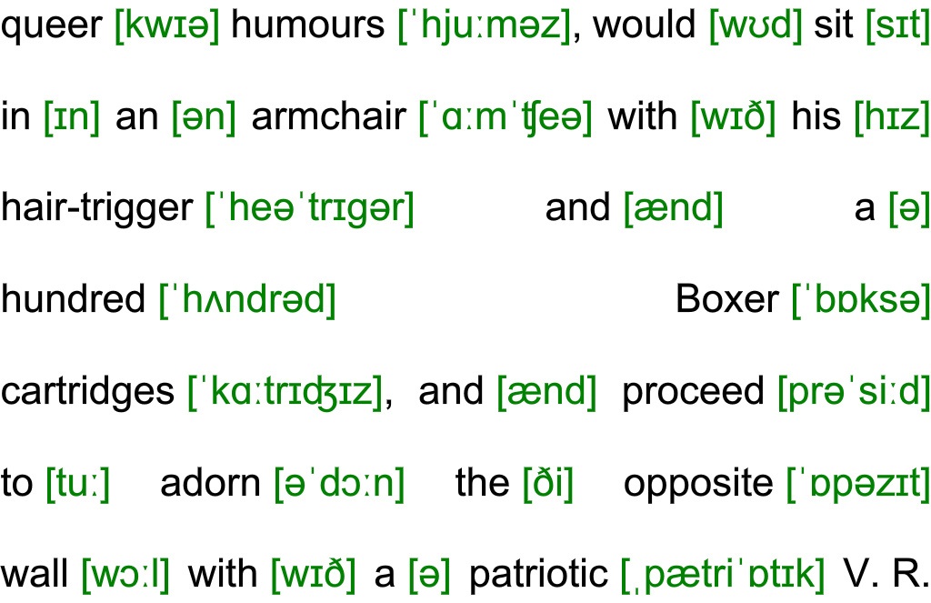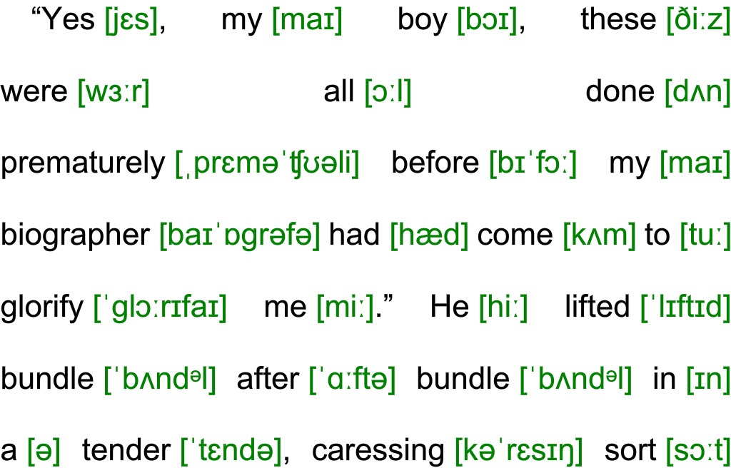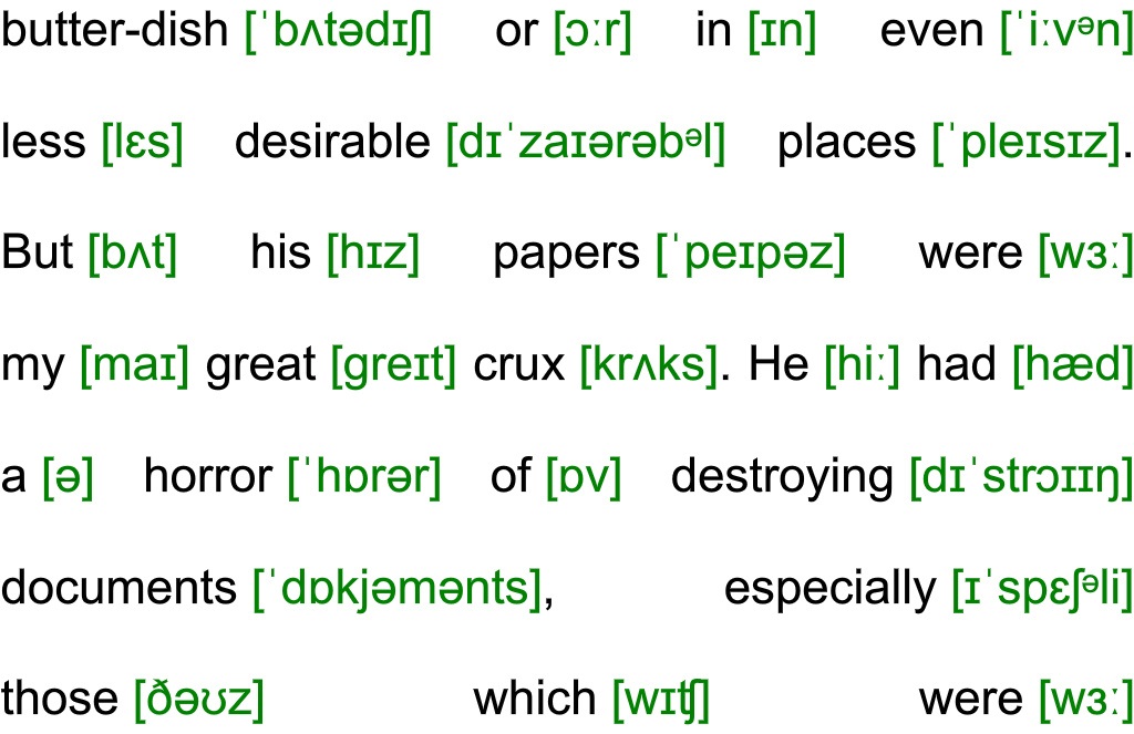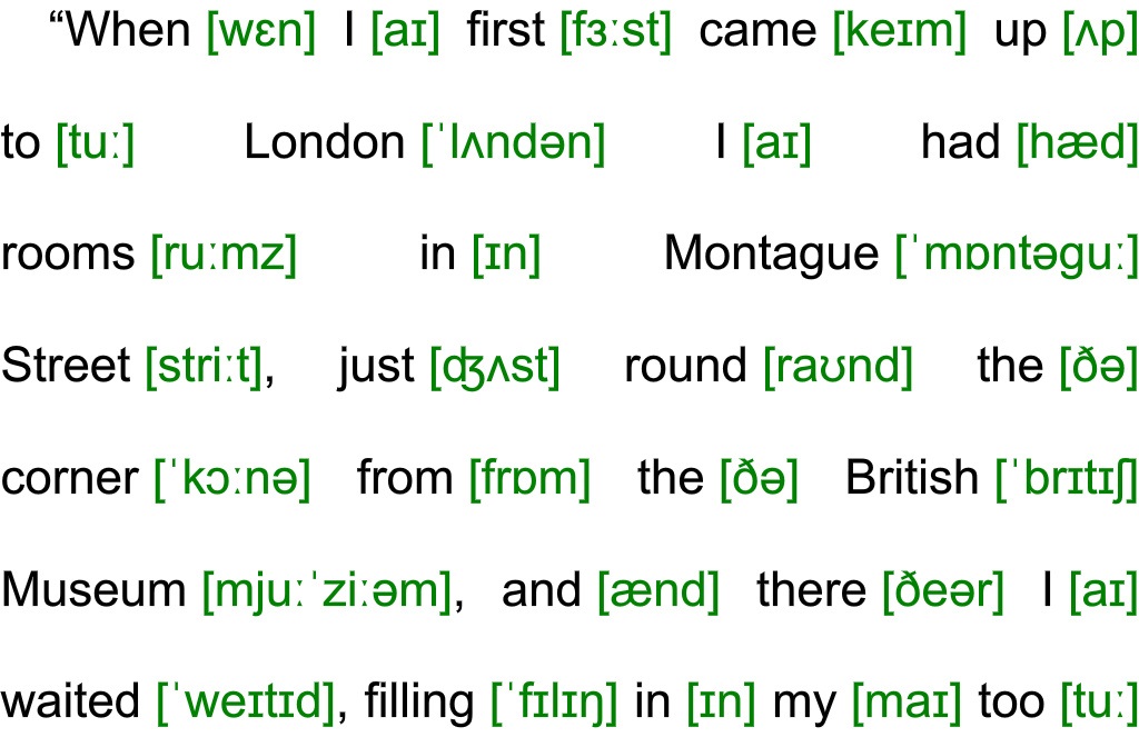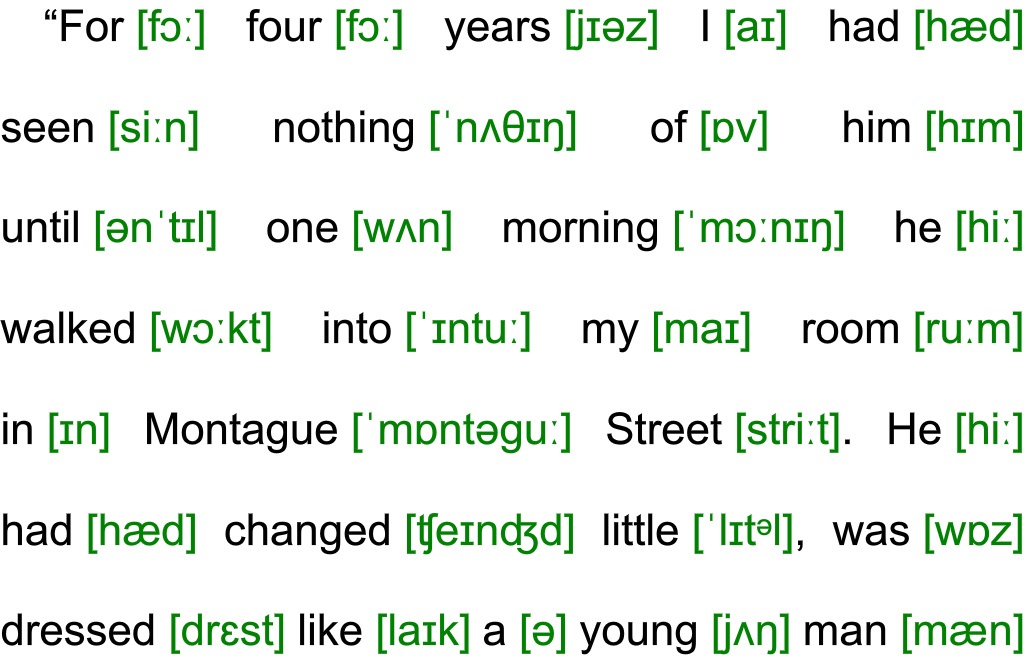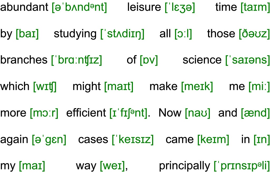 Для подготовки книги использована бесплатная электронная книга с публичного сайта Project Gutenberg и бесплатная аудиокнига с публичного сайта Librivox, озвученная носителем языка (David Clarke). Транскрипция, записанная символами международного фонетического алфавита, выполнена с помощью онлайн-переводчика английского текста в транскрипцию— toPhonetics компании Mu-sonic Ltd. Соответствующие ресурсы приведены в разделе "Использованные источники".