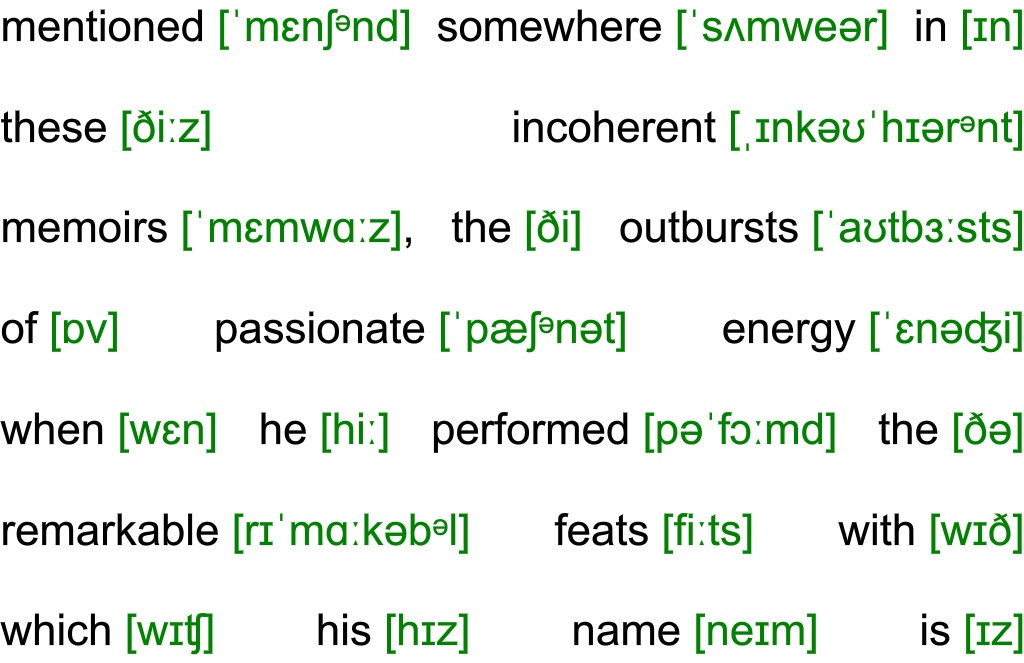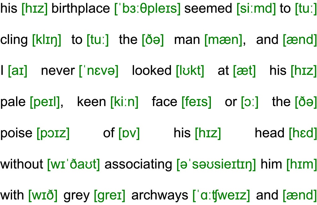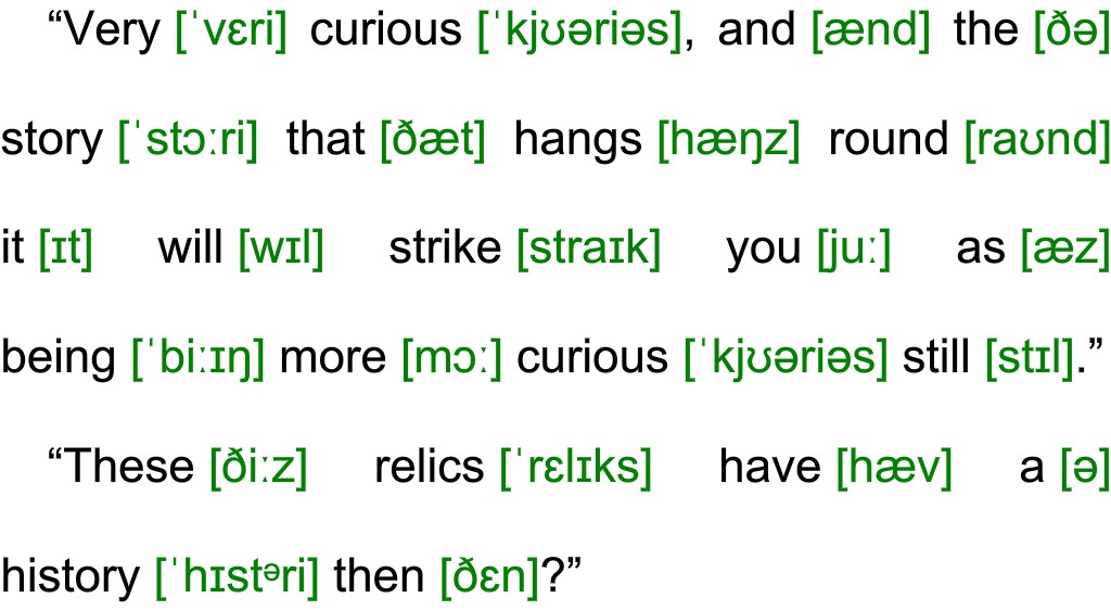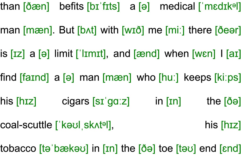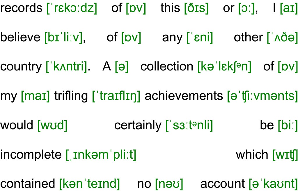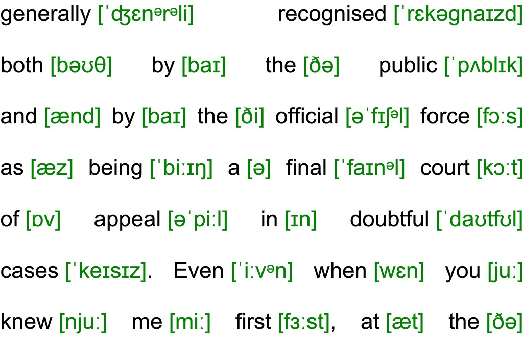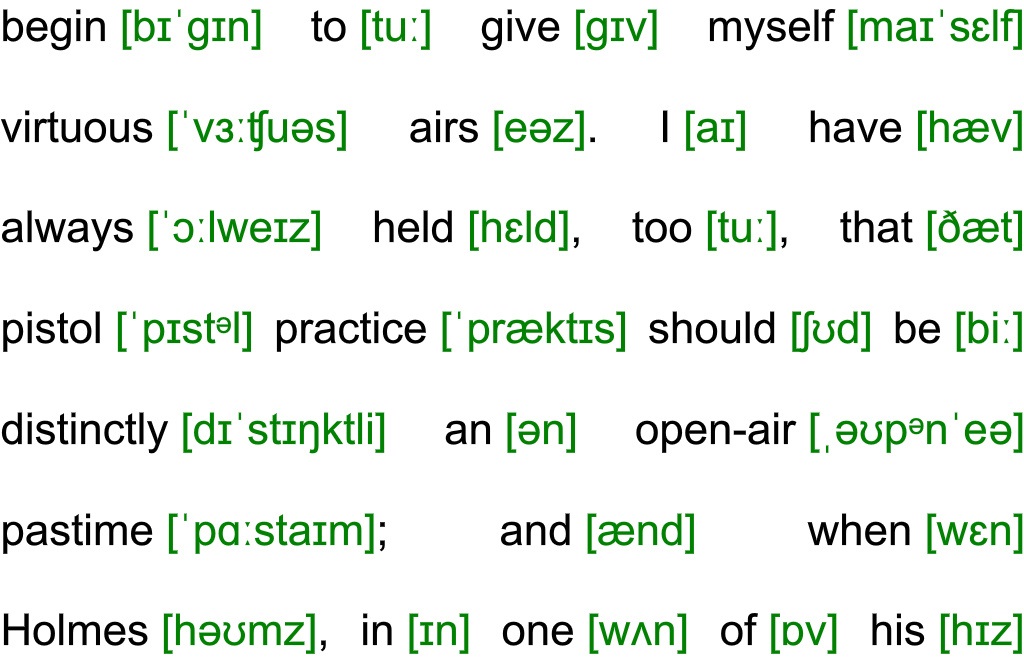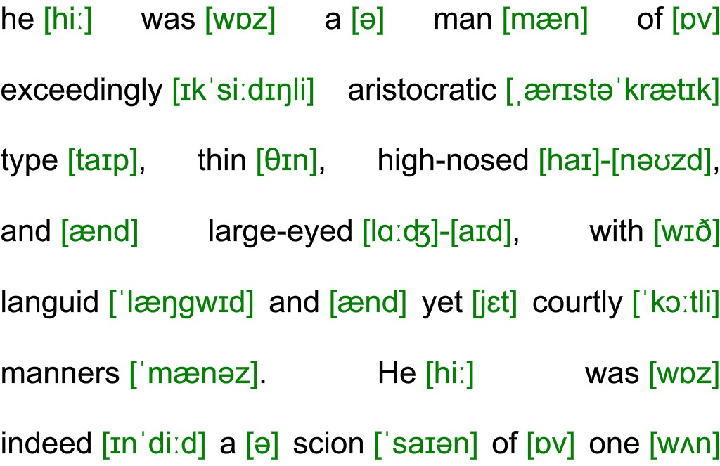 В данной книге приводится транскрипция текста рассказа А.К. Дойла «Обряд дома Месгрейвов» на английском языке. Текст рассказа разбит на небольшие фрагменты. Фрагменты пронумерованы порядковыми номерами (01, 02,…,50). После номера фрагмента приведены время начала и окончания аудиозаписи текста фрагмента в аудиокниге. Для каждого фрагмента подготовлена транскрипция текста, оформленная в виде иллюстраций с изображением транскрипции текста фрагмента.