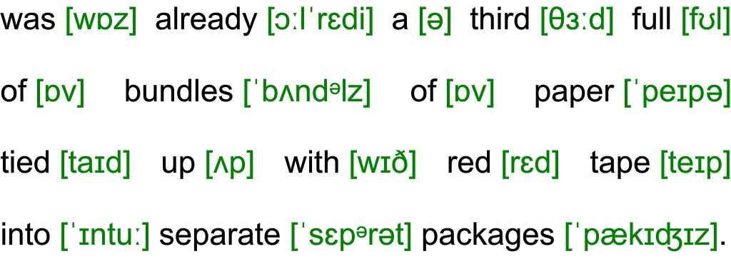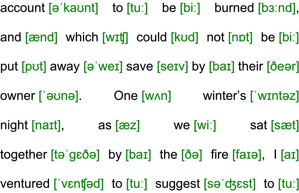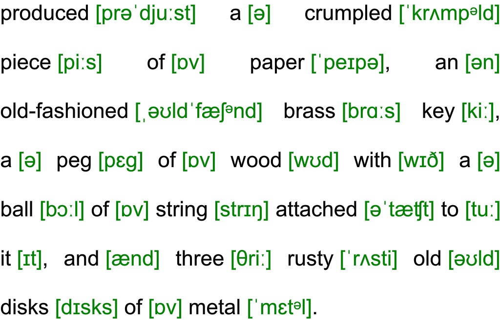 Таким образом, чтение рассказа производится с «подсказками» в виде транскрипции и прослушиванием аудиокниги.