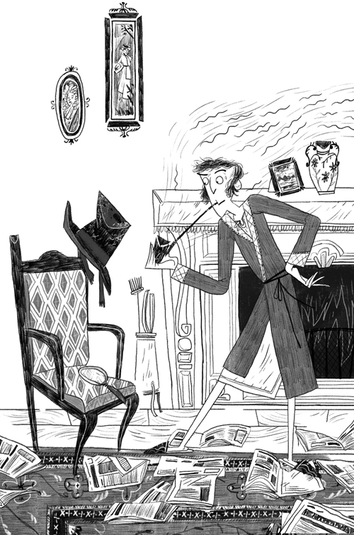 Надежда на то, что дома ждёт новая загадка, которую предстоит разгадать, гнала меня по лестнице, заставляя перепрыгивать через две ступеньки за раз. Я открыл дверь гостиной и увидел Холмса в ночной рубашке и фиолетовом халате.