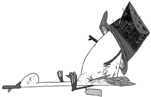 Видно, что он человек умный, но, может быть, много пьёт или играет в азартные игры. Во всяком случае, что-то сделало его менее внимательным в том числе и к собственной внешности: чтобы не потерять шляпу, он прикрепил к ней резинку, но не удосужился её заменить, когда она порвалась. Я также знаю, что жена разлюбила его и что у него в доме нет газа.
